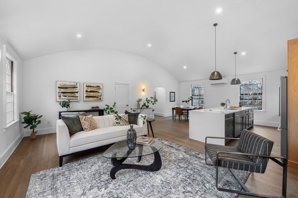 New construction can give you quartz countertops. It can't give you this. Founded in 1629, Marblehead has always done things differently, and 132 Elm Street is proof. Converted from a 1933 church, this residence marries refined luxury - flat front custom-milled cabinets, radiant heated tile floors - with modern efficiency: spray foam insulation and ductless heating/cooling. What it never surrendered is the character that new construction can't manufacture. The original hardwood floors remain. Reclaimed pew woodwork adorns the entryway. The original arched Gothic windows have been restored with new ropes, weights, + pulleys. And the barrel...read more