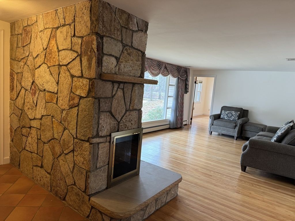 Prestigious Forest Park/Gann Academy Locale! Intriguing Sprawling Raised Ranch with 3-bedrooms plus Den and 2.5 baths Featuring Large Bright Stone Fireplaced Living Room with Picture Window, Skylit Beamed Cathedral Ceiling Oversized Eat-In Kitchen with Sliding Glass Doors to Rear Deck & Private Tiered Fenced Yard, Formal Dining Room, New Roof, New Paint interior, polished and newly painted hardwood floors, Newer 2014 Designer Tile Bath, Newer Windows, Master Bedroom Suite with Newer 2018 Private Tile Bath and new countertop, Finished Lower Level Fireplaced Family Room & 1/2 Bath (new toilet), 2-year new Washer and Dryer, Central AC, Central...read more