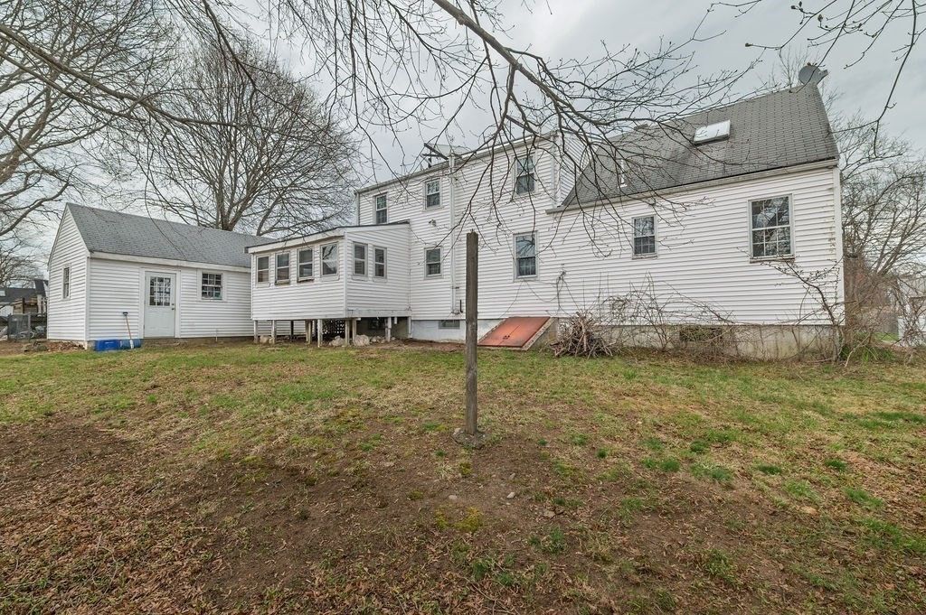 Five bedroom expanded Cape featuring a one bedroom, IN-LAW addition or possible AUX Apartment unit. Main house has 4 bedrooms, two full baths, eat-in kitchen, formal dining room, and fireplaced living room. Also a spacious full basement, and detached oversized one car garage, All in need of some updating. This is a great opportunity for building in equity with improvements. Nice fenced yard in an excellent single family subdivision neighborhood. Convenient to all community amenities such as; shopping, walking trails, schools, public transportation, parks, restaurants, and much more.