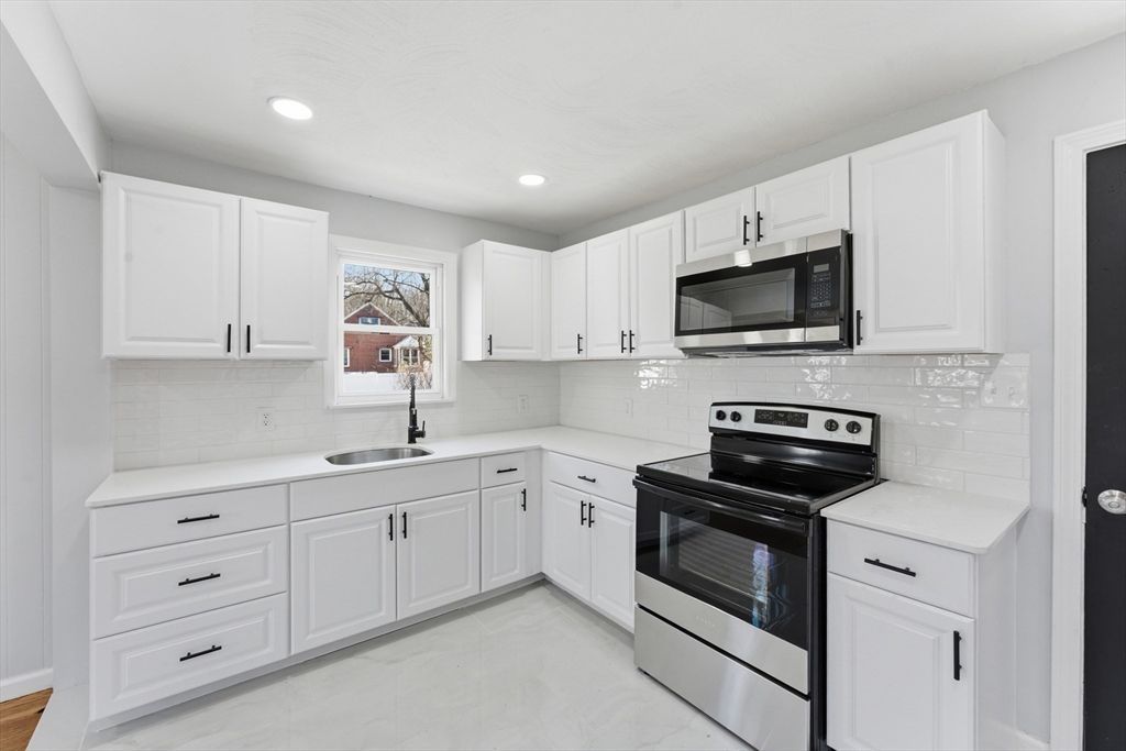 Beautifully renovated and conveniently located large brick cape in a desirable neighborhood close to Hubbard Park. Enter through the new front door and find gleaming newly refinished hardwood floors in the large living room with wood fireplace and dining room that is open to the stunning new kitchen with bright white ceramic flooring and equipped with quartz counters, white cabinets, and stainless/black appliances with wood fireplace. Half bath is also stunning with the same flooring. Next find the first floor bedroom with same gleaming hardwoods. Bonus is the bright sunroom off the Living room. Upstairs find two great sized bedrooms with...read more