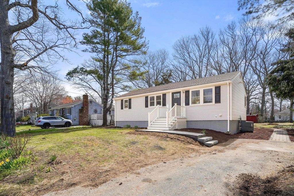 Exciting renovation offering by noted builder. Beautiful redesigned open full plan. Living room with hardwood floors, open kitchen with custom white shaker style cabinets, quartz counters, white tile backsplash, stainless appliance package, gas cooking, three bedrooms with fitted closets, spectacular bath with custom vanity, LED mirror, designer fixtures, linen closet, recessed lights and hardwood floors through out, new slider access to rear patio and expansive level lot, A/C, new electrical and plumbing, full basement with laundry hook up. Not in a flood zone. Green Harbor beach and Marina nearby, shops and restaurants of Brant Rock, and...read more