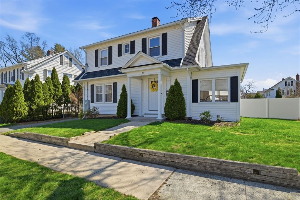 Nestled in desirable area in prime location, this nicely updated colonial radiates warmth & character. Set on large level lot w/new patio & fencing, this home is bathed in natural light & features seamless circular flow. Inviting living room captivates w/custom millwork, a fireplace & French door opening to cozy den. Bright modern kitchen shines w/crisp white cabinetry, white subway tile, stainless steel appliances & durable wood laminate flooring, effortlessly connecting to dining room featuring built-in display cabinet w/leaded glass windows. A full bath completes main level. Upstairs, 3 bedrooms w/beautiful hardwood floors are served by...read more