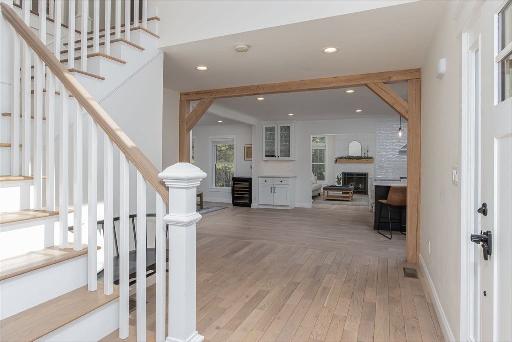 Gorgeous four year old farmhouse Colonial w/ wrap-around porch boasts exceptional attention to detail, design & selections! Sun drenched home offers a two story foyer which greets you w/ a beautiful open concept floor plan. Eat-in-kitchen with center island, walk in pantry, and beautiful cabinetry. Living room with vaulted ceiling and inviting fireplace flanked with transom window accents. Spacious mudroom and dining room. First floor bedroom w/ en-suite full bathroom. There is also an office on the first floor. Large composite deck located off the living room overlooking the private fenced in backyard. Primary suite has an exceptional customized...read more