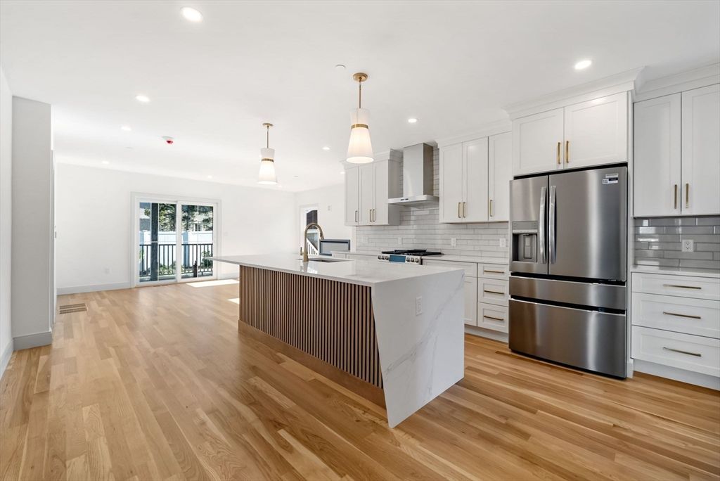 Perfectly positioned across from Spot Pond, this newly constructed 3-bedroom, 2-bath luxury residence offers a refined blend of elevated design and natural beauty. This direct-entry first-floor home is thoughtfully crafted with custom finishes throughout, showcasing white oak flooring, bespoke cabinetry, and elegant quartz surfaces in both the kitchen and baths. The open-concept layout is designed for modern living and effortless entertaining, highlighted by stunning custom-designed living room built-ins anchored by a sleek, modern fireplace. A private ~200 sq ft deck extends the living space outdoors, while select rooms capture partial pond...read more
