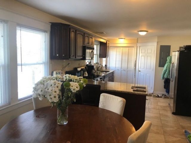 June availability... In Newtonville, close to the newly renovated Cabot School and the vibrant eateries & shops of Newtonville Square, beautiful condo-quality second floor unit with garage parking, updated large open kitchen, boasting granite counters and stainless appliances. Master with en suite bathroom. Living room enjoys fireplace. Heated sun room. ** Central air. Garage (1 car), another car off street. Laundry in unit **